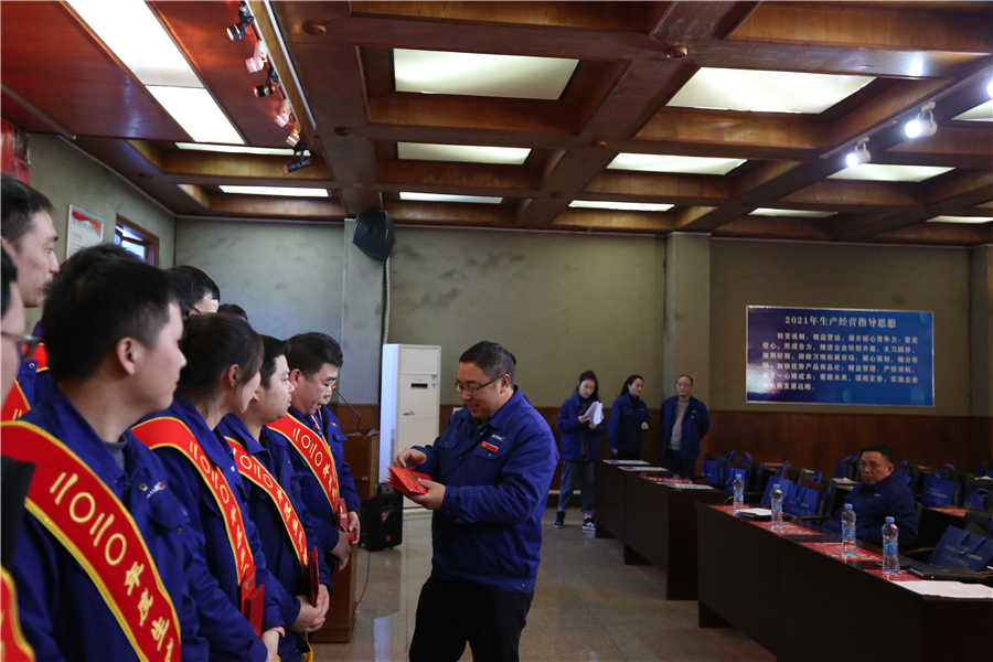公司黨委書(shū)記、董事長(zhǎng)龍美彪,黨委副書(shū)記、總經(jīng)理譚新民等公司領(lǐng)導(dǎo),分別為2020年度先進(jìn)集體、先進(jìn)個(gè)人頒獎(jiǎng)。頒獎(jiǎng)結(jié)束后,黨委副書(shū)記、總經(jīng)理譚新民,公司黨委書(shū)記、董事長(zhǎng)龍美彪先后發(fā)表了重要講話,向受表彰的先進(jìn)集體和個(gè)人表示熱烈祝賀,充分肯定了他們?yōu)楣?020年生產(chǎn)經(jīng)營(yíng)工作做出的突出貢獻(xiàn),勉勵(lì)他們繼續(xù)發(fā)揚(yáng)成績(jī),勤奮、努力、踏實(shí)地工作,無(wú)怨、無(wú)悔、無(wú)私地奉獻(xiàn),在各自的崗位上做出更加優(yōu)秀的業(yè)績(jī)。號(hào)召公司全體員工以先進(jìn)為學(xué)習(xí)榜樣,面對(duì)當(dāng)前難得的市場(chǎng)機(jī)遇和持續(xù)高產(chǎn)壓力,合力攻堅(jiān)、打破常規(guī)、連續(xù)奮戰(zhàn)、挑戰(zhàn)極限,確保效率提升、產(chǎn)能提升、訂單準(zhǔn)時(shí)交付;面對(duì)日益激烈的市場(chǎng)競(jìng)爭(zhēng)和前所未有的生存壓力,居安思危、開(kāi)拓創(chuàng)新、凝心聚力、奮發(fā)有為,為開(kāi)創(chuàng)公司轉(zhuǎn)型發(fā)展新局面而努力奮斗。