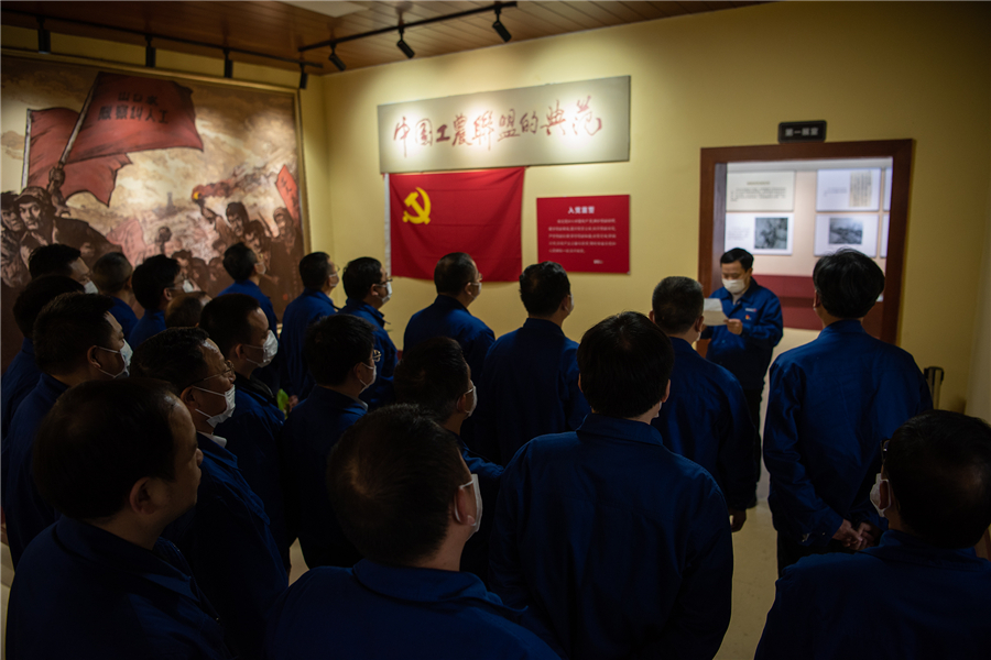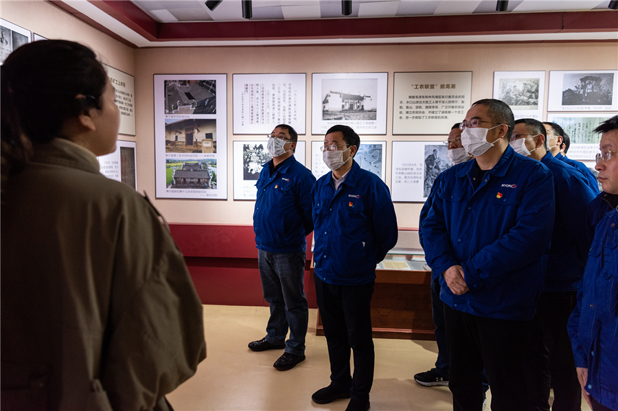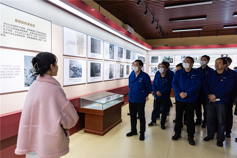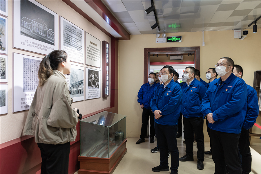 專題學(xué)習(xí)研討會(huì)結(jié)束后,全體班子成員冒雨驅(qū)車赴水口山工人運(yùn)動(dòng)陳列館,開(kāi)展“學(xué)史明理”主題黨日活動(dòng),在陳列館前坪,黨委書記、董事長(zhǎng)龍美彪帶領(lǐng)全體班子成員重溫入黨誓詞,以鏗鏘誓言明初心知使命,進(jìn)一步堅(jiān)定了聽(tīng)黨話、跟黨走的信心和決心。隨后,大家跟隨講解員的腳步,進(jìn)入陳列館參觀,并認(rèn)真聽(tīng)取講解,從“商周根基,傳承千年神韻”到“封建殖民,激起自發(fā)抗?fàn)帯?,從“罷工怒潮,響徹神州大地”到“奔向井岡,踏上新的征程”、“革命先輩,功績(jī)名垂青史”,通過(guò)大量文物實(shí)物和珍貴照片,大家重溫崢嶸歲月、緬懷革命先烈、聆聽(tīng)紅色故事、感受紅色文化,全面了解了中國(guó)共產(chǎn)黨領(lǐng)導(dǎo)下的水口山工人運(yùn)動(dòng)的光輝歷程。