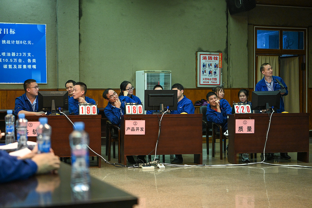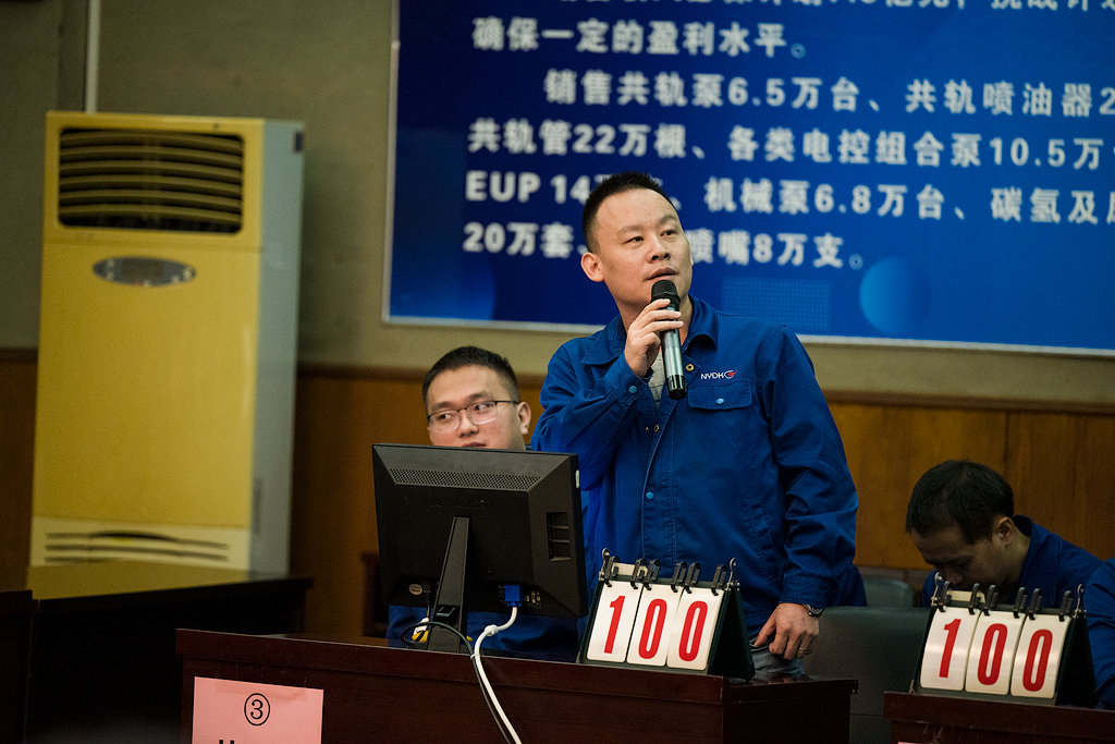 大賽由公司副總經(jīng)理李運(yùn)升擔(dān)任裁判長,總師辦主任伍立英、內(nèi)控審計(jì)部部長賀志勇、質(zhì)量控制部劉月林擔(dān)任裁判。比賽分預(yù)賽和決賽兩個(gè)階段進(jìn)行。預(yù)賽共3場,16支代表隊(duì)抽簽決定上場順序,每場預(yù)賽前2名出線直接進(jìn)入決賽;決賽1場,由6支參賽隊(duì)比拼并決出一、二、三名。競賽題型包含必答題、搶答題和風(fēng)險(xiǎn)題三個(gè)環(huán)節(jié)。在10月12日、13日晚的預(yù)賽中,16支參賽隊(duì)嚴(yán)謹(jǐn)審題、認(rèn)真作答,賽出了風(fēng)格,賽出了水平,充分展示了扎實(shí)的質(zhì)量管理流程基礎(chǔ)知識功底和融洽的團(tuán)隊(duì)協(xié)作精神,比賽緊張激烈,比分交替上升,贏得了觀眾和評委熱烈的掌聲。經(jīng)過3場預(yù)賽的激烈比拼,產(chǎn)品開發(fā)部、共軌車間、熱處理車間、總裝車間、機(jī)關(guān)一支部、質(zhì)量控制部6支代表隊(duì)脫穎而出殺入決賽。