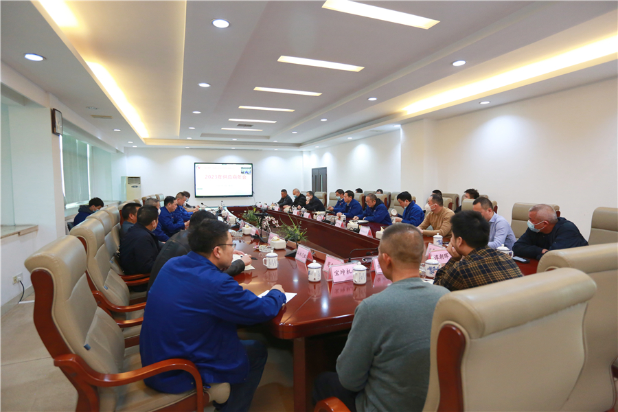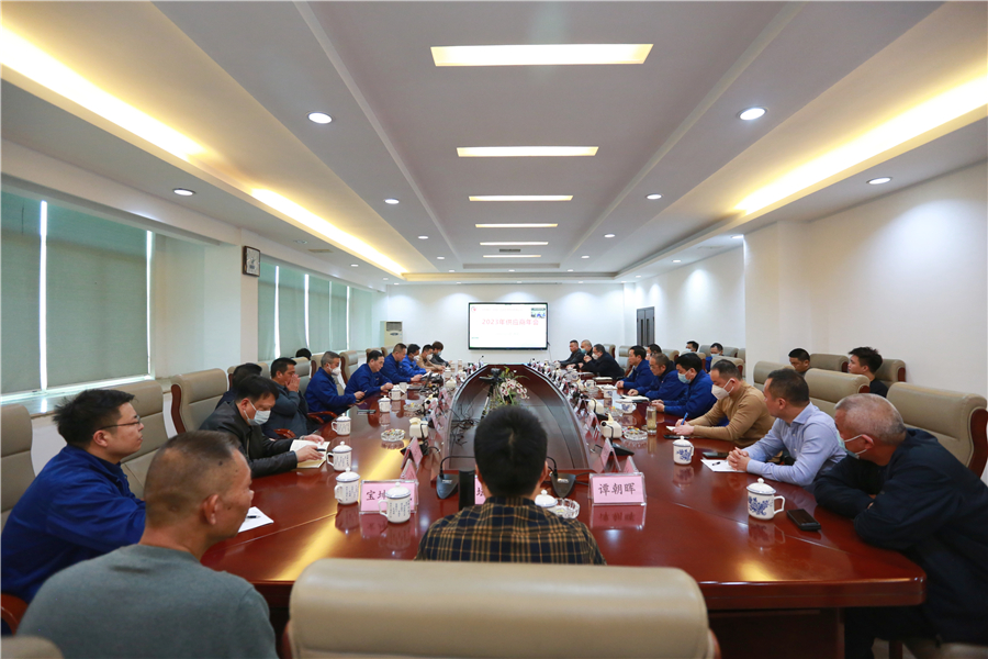 2023年1月13日,公司2023年度供應(yīng)商年會在新廠VIP會議室隆重召開。本次供應(yīng)商年會采取現(xiàn)場+云視頻的形式舉行,主會場現(xiàn)場邀請15家“2022年度優(yōu)勝供應(yīng)商”代表參會,來自全國各地的100余名供應(yīng)商代表通過視頻連線方式參加會議。公司黨委書記、董事長龍美彪,黨委副書記、總經(jīng)理譚新民,常務(wù)副總譚愛平等高層領(lǐng)導(dǎo)及技術(shù)中心、質(zhì)量控制部、采購中心等部門負(fù)責(zé)人出席會議。