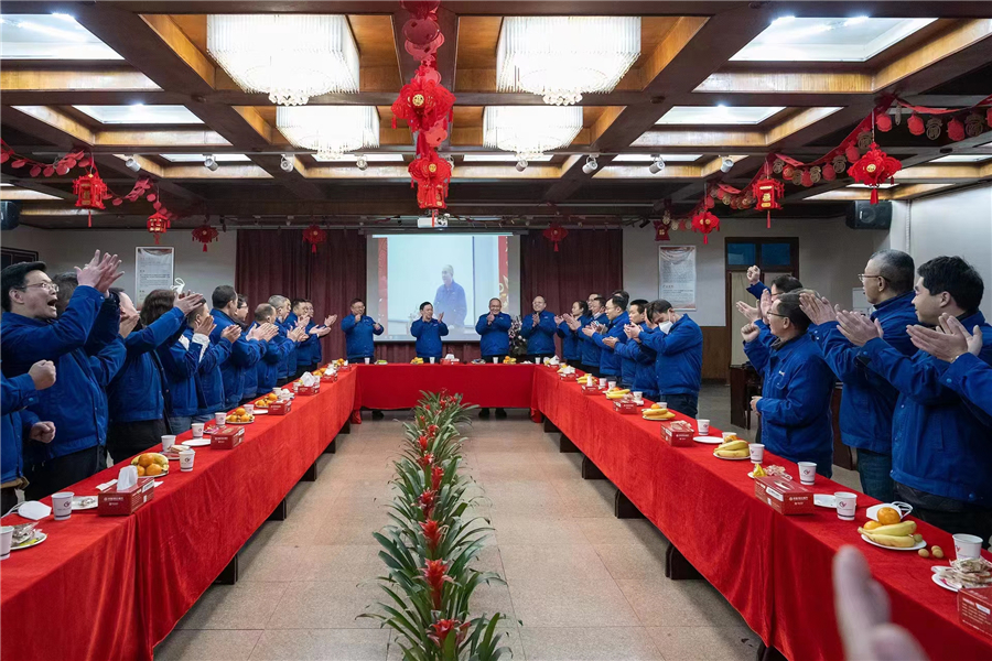 瑞虎報(bào)捷辭舊歲,玉兔踏春迎新年。2023年1月22日(正月初一)上午,公司在科技大樓大會(huì)議室舉行2023年新春團(tuán)拜會(huì)。公司黨委書記、董事長龍美彪致辭,黨委副書記、總經(jīng)理譚新民帶領(lǐng)全體人員宣誓奪取新年新業(yè)績,公司全體高層領(lǐng)導(dǎo)及中層正職領(lǐng)導(dǎo)干部參加團(tuán)拜活動(dòng)。