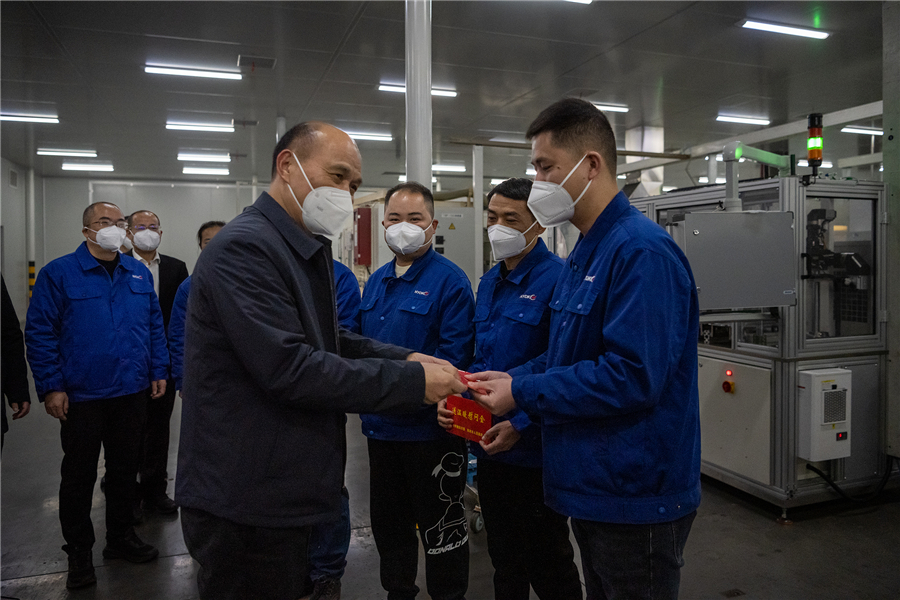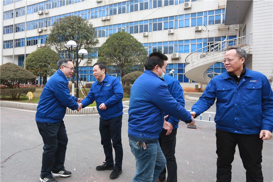 團(tuán)拜結(jié)束后,公司黨委書記、董事長龍美彪,黨委副書記、總經(jīng)理譚新民率全體高層領(lǐng)導(dǎo)及中層正職領(lǐng)導(dǎo)干部走進(jìn)各生產(chǎn)車間慰問一線加班員工,與大家互致新年問候,并在新廠迎接中共衡陽市委書記劉越高走訪慰問。