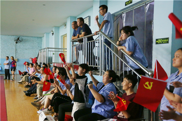 B組各隊相對偏弱,但總裝車間隊?wèi){借合理的戰(zhàn)術(shù)打法、過硬的意志品質(zhì),揚(yáng)長避短,戰(zhàn)勝了質(zhì)量控制部隊,以小組第二出線。比賽真正的高潮出現(xiàn)在交叉賽中,A組第一金工車間隊對陣B組第二總裝車間隊,本以為是一場毫無懸念的比賽,卻演變成了一場以弱勝強(qiáng)的戲劇性比賽。男雙由金工車間隊張建文、張利輝對陣總裝車間隊劉宏偉、謝磊,比分從一開始便呈現(xiàn)膠著狀態(tài);劉宏偉、謝磊打得非常放松,而張建文、張利輝卻異常緊張,雙方在場上每分必爭,軟放、平抽擋、突擊、強(qiáng)力扣殺、回防,高強(qiáng)度、高速度、強(qiáng)對抗,比分交替上升。劉宏偉在戰(zhàn)法安排上思路非常清晰,新手謝磊的表現(xiàn)也令人刮目相看;而張建文、張利輝的打法卻略顯僵硬,導(dǎo)致失誤偏多,在先贏一局的前提下,連丟兩局,輸?shù)袅四须p。場外觀眾也異常興奮,連連喝采,將場上氣氛激發(fā)到了極致?!氨荣惾珌y套了,結(jié)果讓人意外,今年的比賽最有看頭!”一位現(xiàn)場觀眾興奮地評價此次比賽,“這是公司有史以來最具觀賞性的一屆比賽!”
